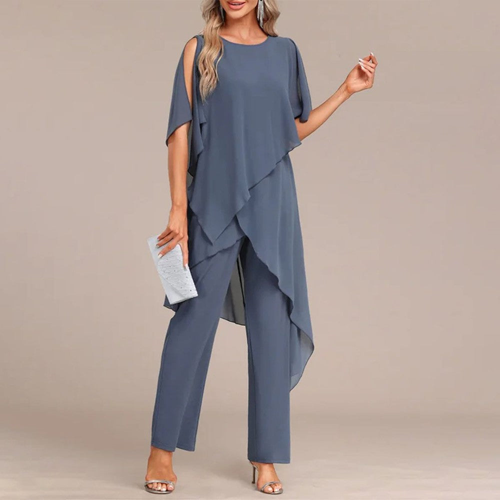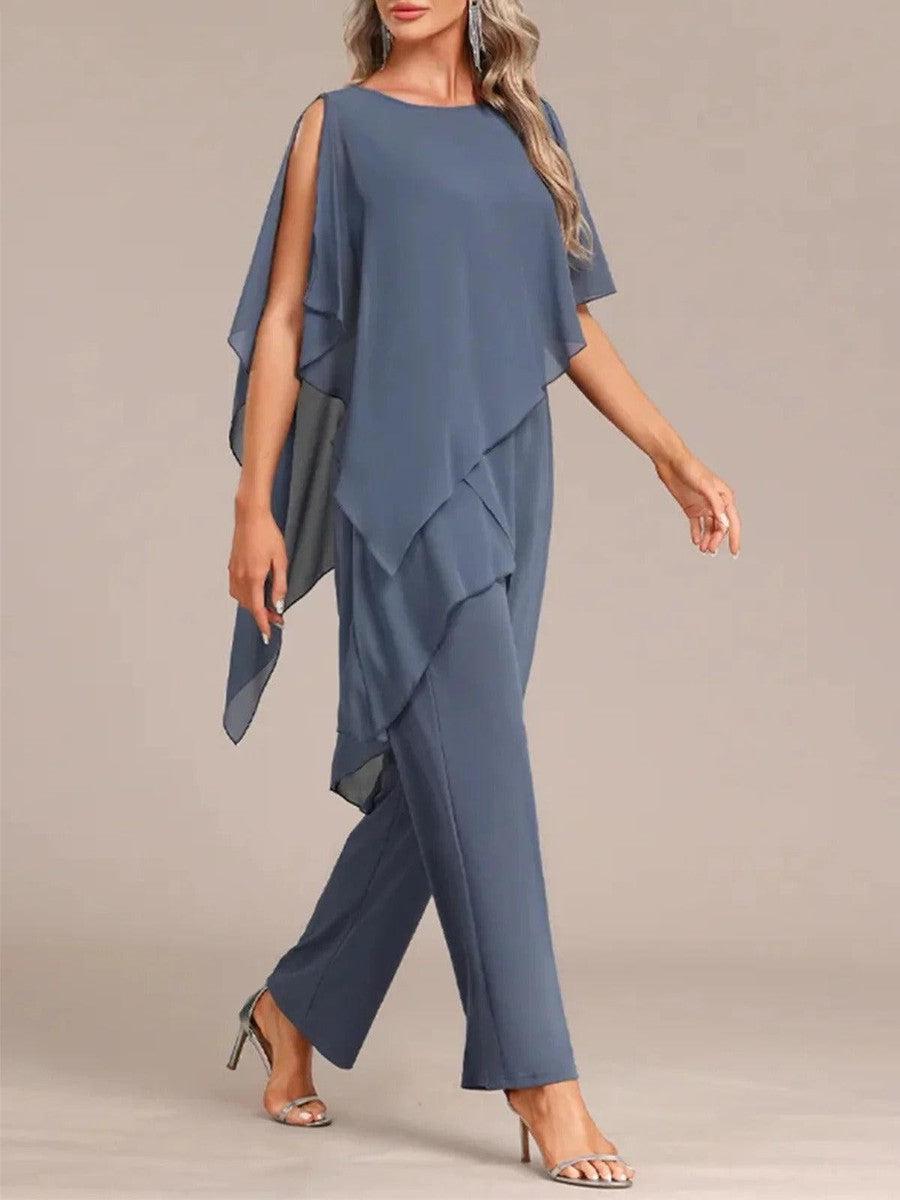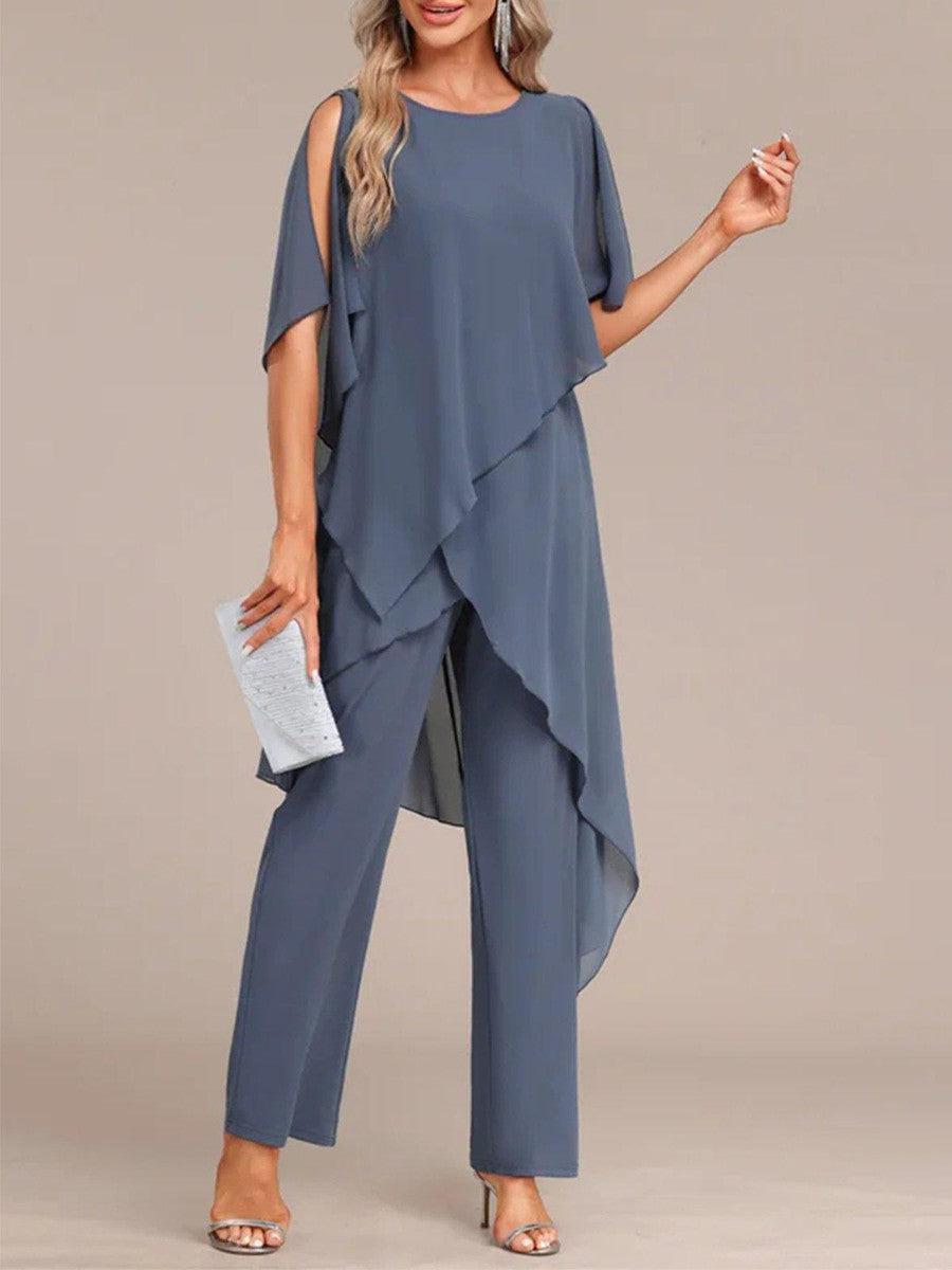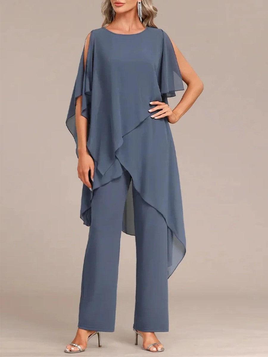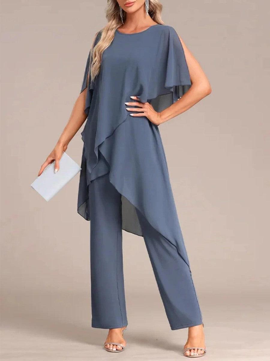 Cet ensemble deux pièces bleu à col rond offre un look élégant et raffiné. Son col rond ajoute une touche d'élégance, tandis que cet ensemble deux pièces est polyvalent et facile à assortir. Fabriqué avec des matériaux de haute qualité, il allie confort et durabilité, ce qui en fait un incontournable de toute garde-robe tendance.