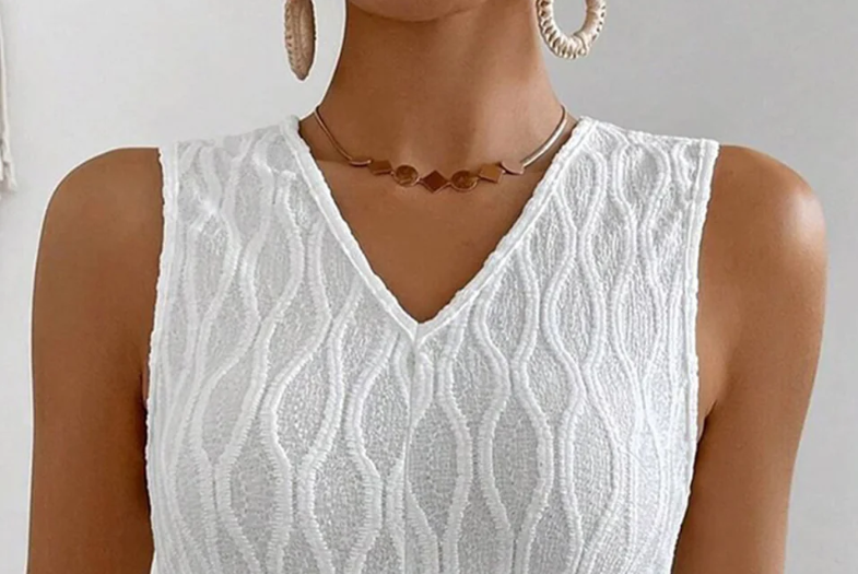 Ce débardeur simple et uni sans manches à col en V est une pièce polyvalente et indispensable à toute garde-robe. Confectionné dans un tissu de haute qualité, il est doux et confortable, tandis que son col en V apporte une touche de sophistication. Parfait à superposer ou à porter seul, il est un incontournable en toutes occasions.