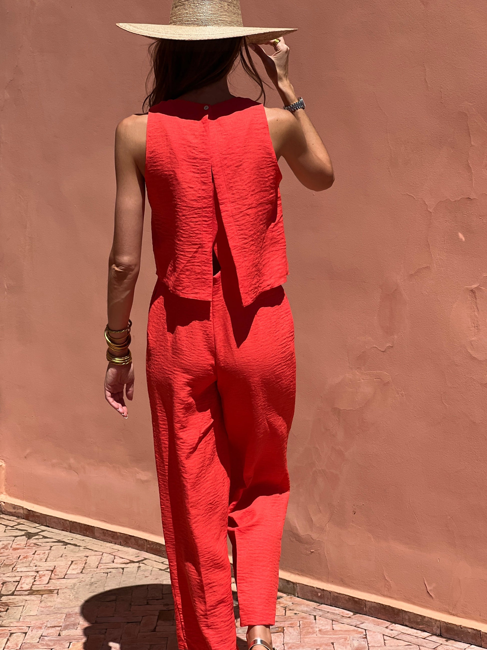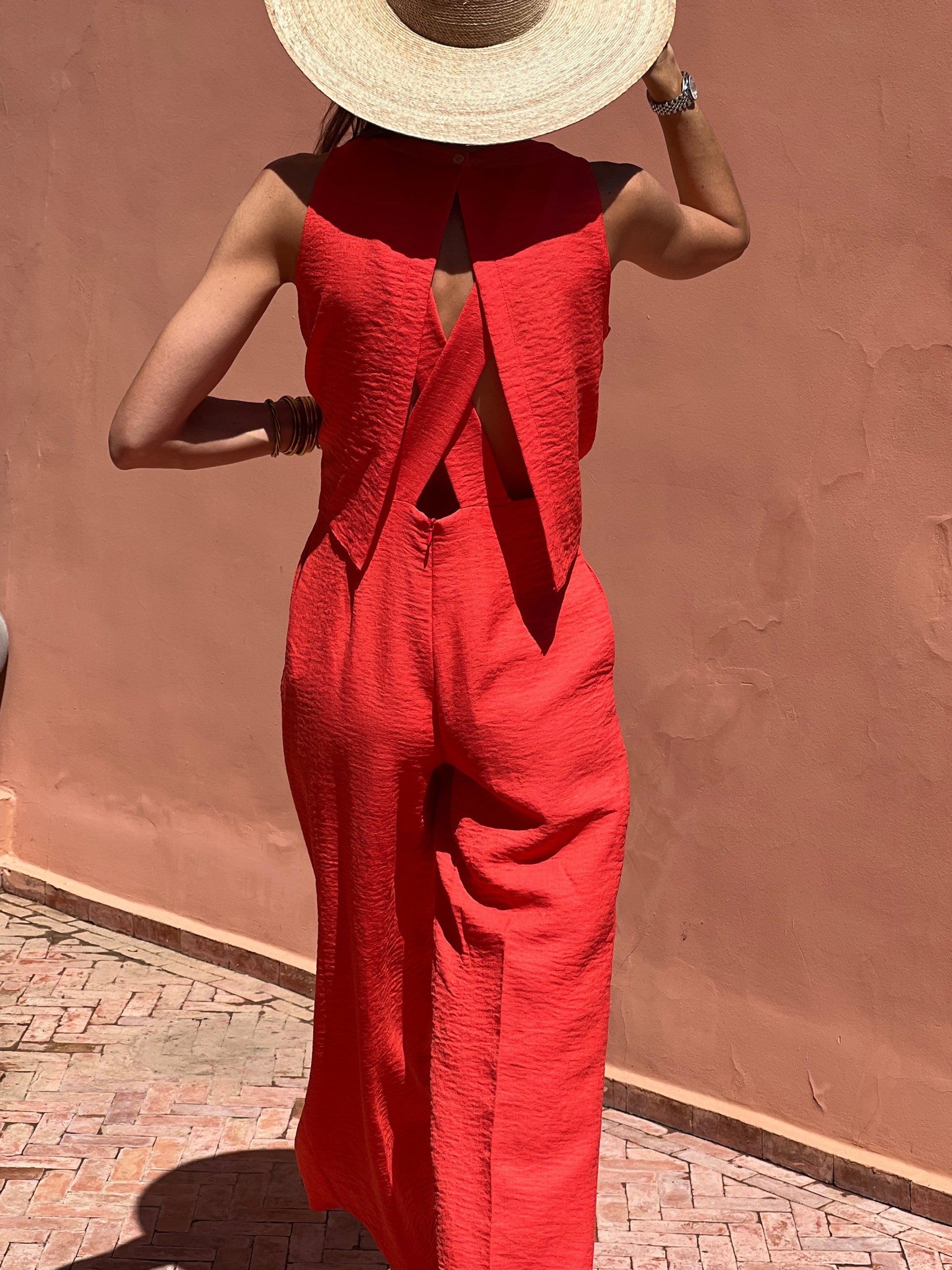 Si vous cherchez la combinaison parfaite, ne cherchez plus : Jade est celle qu’il vous faut ! Son dos subtilement ouvert apporte une touche de raffinement, tandis que sa coupe flatteuse et sa matière fluide créent un tombé impeccable.