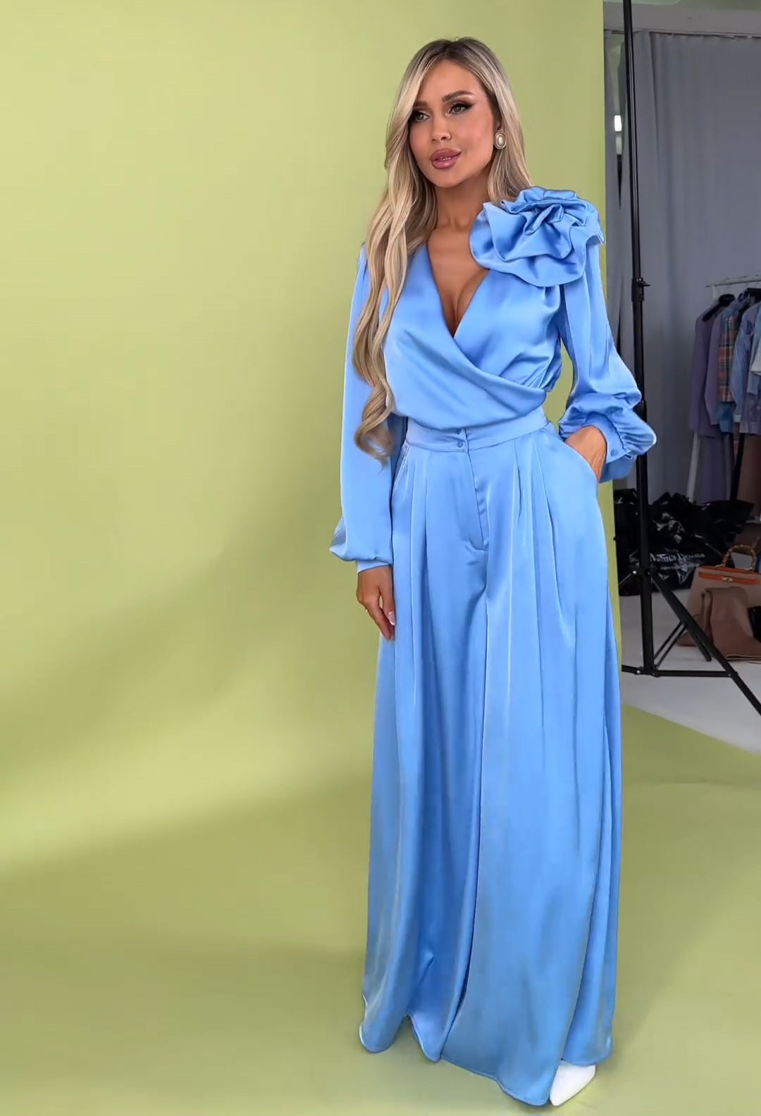 SERENA – BLOUSE EN SATIN ÉLÉGANTE AVEC ENCOLURE DOUCE