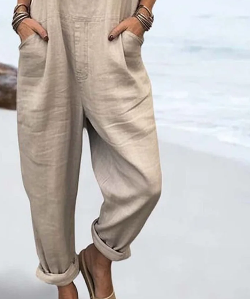Cette combinaison kaki unie sans manches est un incontournable de toute garde-robe. Avec son design élégant et polyvalent, elle s'adapte à toutes les occasions, qu'il s'agisse d'une tenue habillée ou décontractée. Confectionnée dans un tissu de haute qualité, elle allie confort et style. Parfaite pour une journée au bureau ou une soirée, elle offre des possibilités infinies.