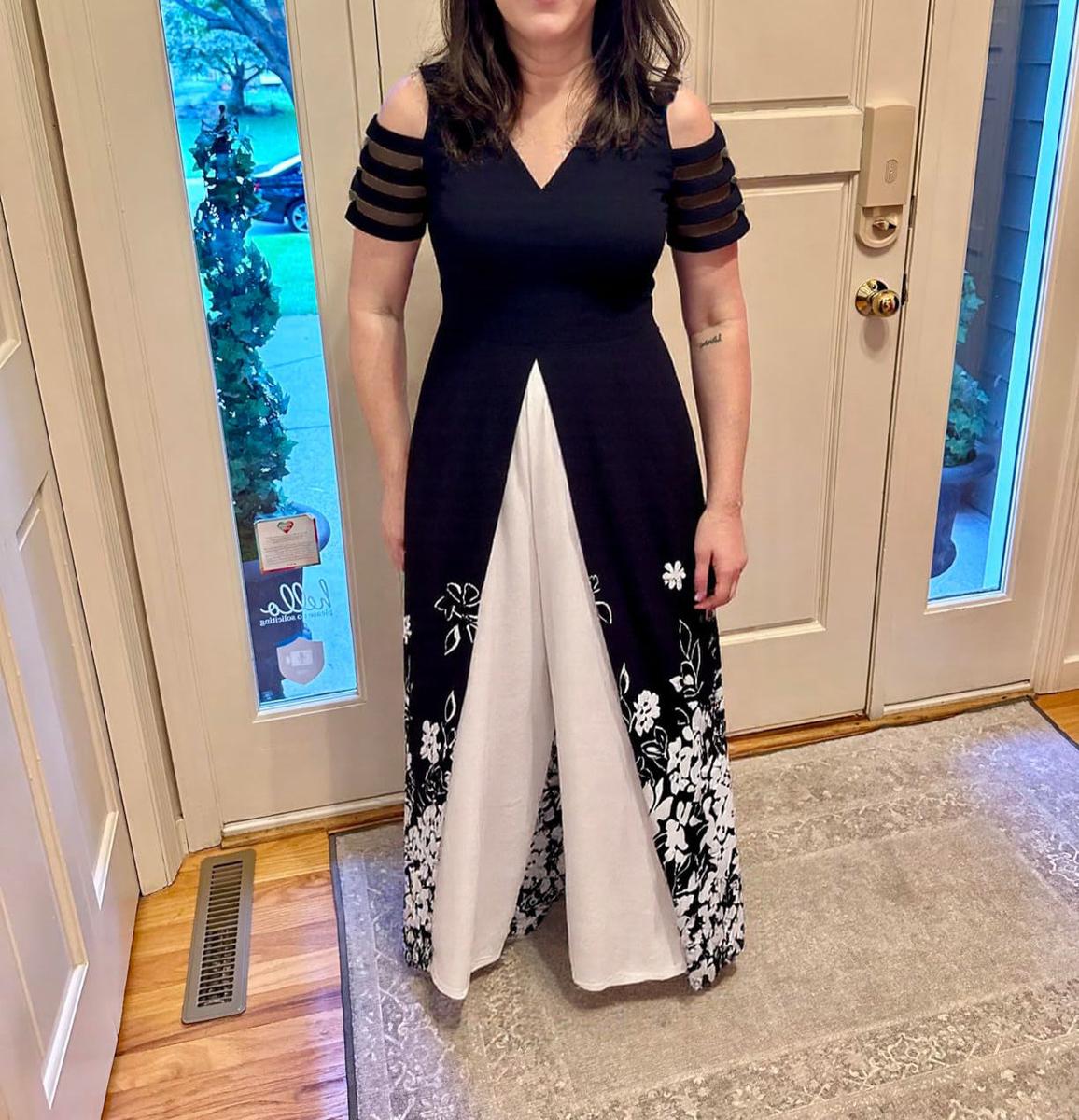 Cet ensemble deux pièces arbore un superbe imprimé floral noir et blanc, à la fois élégant et polyvalent. Son tissu léger offre confort et respirabilité, tandis que sa coupe deux pièces permet de combiner les styles à volonté. Parfait en toute occasion, cet ensemble est un incontournable de votre garde-robe.