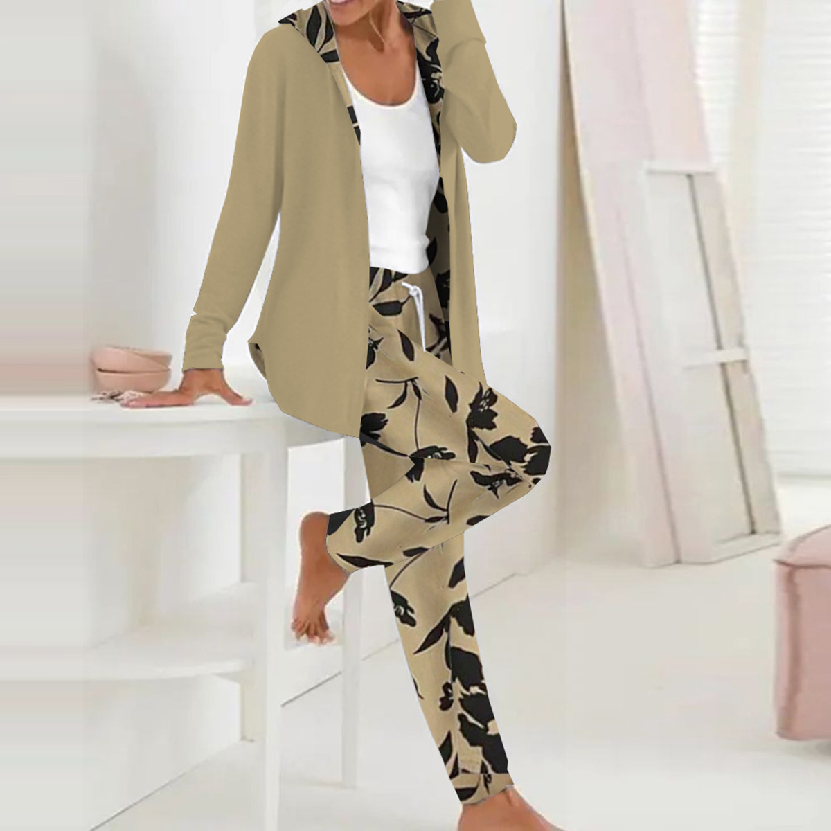 Ensemble deux pièces à capuche marron et manches longues