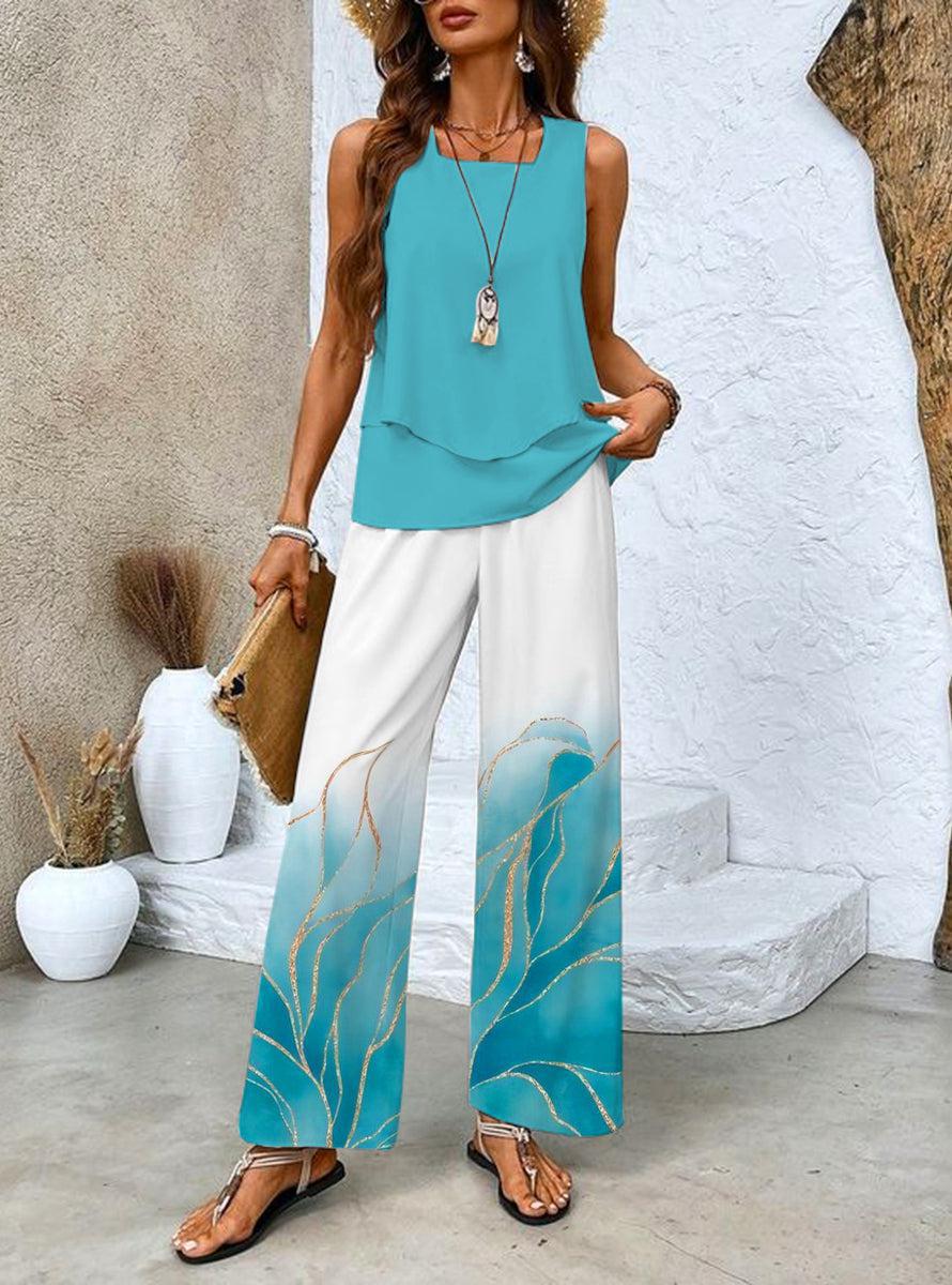 Restez stylée et tendance avec notre ensemble deux pièces bleu frais sans manches. Fabriqué dans une matière confortable et respirante, cet ensemble est parfait pour toutes vos sorties estivales. Son design sans manches et son style deux pièces offrent un look tendance et polyvalent. Rehaussez votre garde-robe avec cet ensemble indispensable.