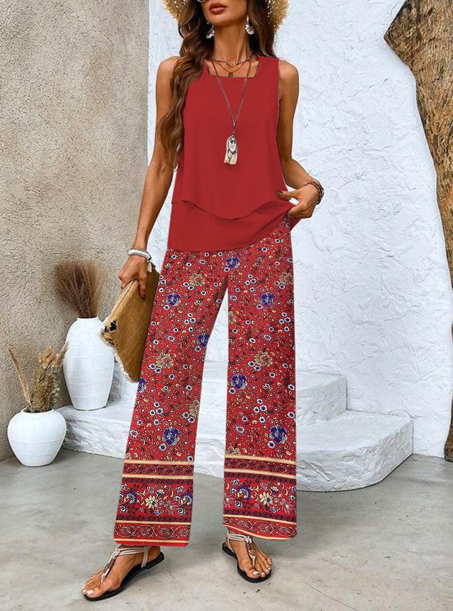 Cet ensemble deux pièces rouge vif sans manches respire l'assurance et le style. Fabriqué dans une matière confortable et résistante, il est parfait en toute occasion. Avec sa couleur rouge vif et son design élégant, vous vous sentirez comme chez vous. Révélez la beauté qui sommeille en vous dès aujourd'hui !
