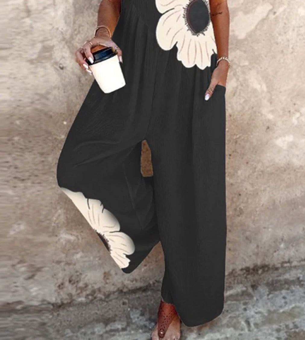 Combinaison élégante sans manches à imprimé floral