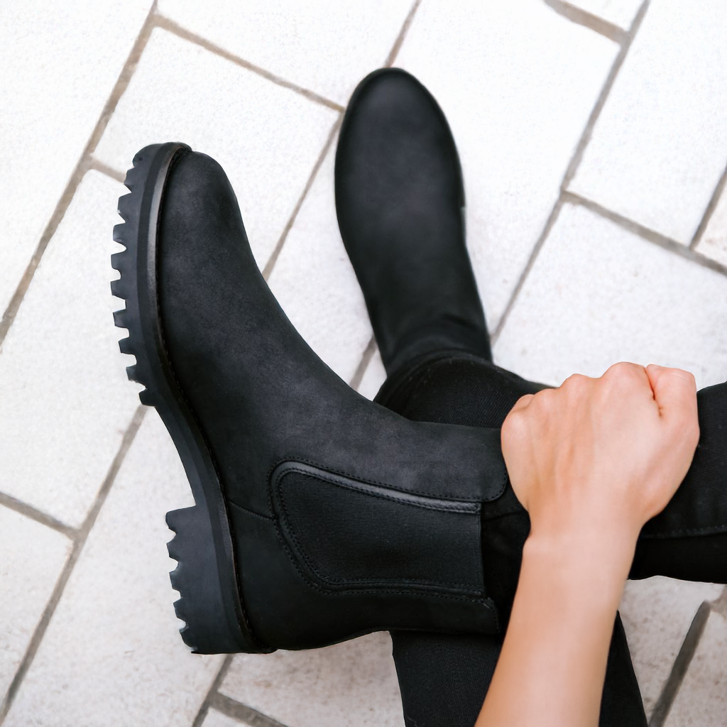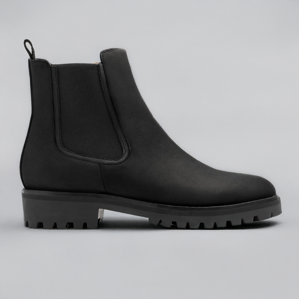 Ces bottes sont fabriquées en cuir noir mat, résistant aux éléments. La doublure en cuir respirant et la semelle intérieure amortissante assurent un confort et un soutien durables. La semelle extérieure en caoutchouc offre une adhérence maximale à chaque pas.